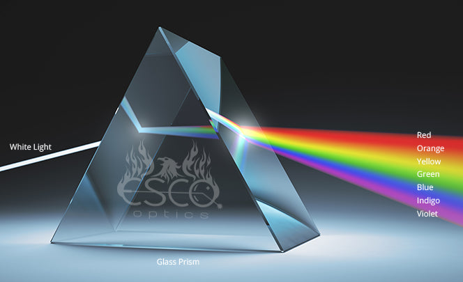 ==色散==(Vd) 建立在折射率的概念之上,并由相同的原理推导出来。折射率使光学设计人员能够了解光在一般意义上如何弯曲,而色散更准确地定义了每个特定波长的光将弯曲的程度。当白光通过棱镜时会产生这种现象的一个常见例子。由于不同波长在通过棱镜时以不同的速率减速,因此每个波长也以略微不同的角度弯曲。
