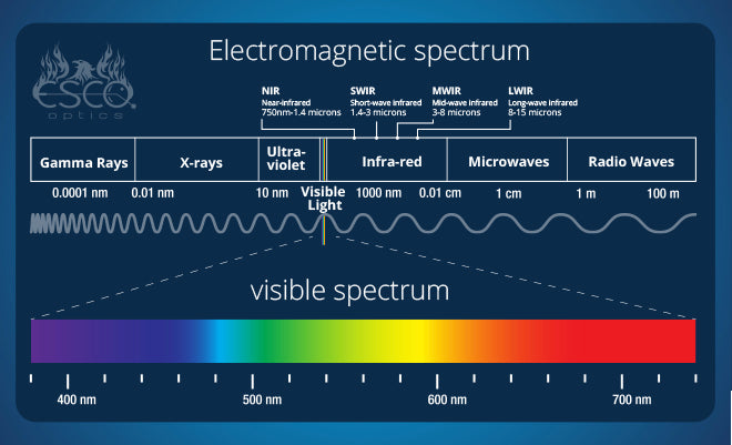 如您所见,可见光只占整个光谱的一小部分。比可见光波长短的波长包括紫外线和 X 射线区域,而波长较长的是红外线、微波和无线电波。您还会注意到,较长的波长在提及其峰峰值波长距离时以微米、毫米甚至千米为单位进行测量。